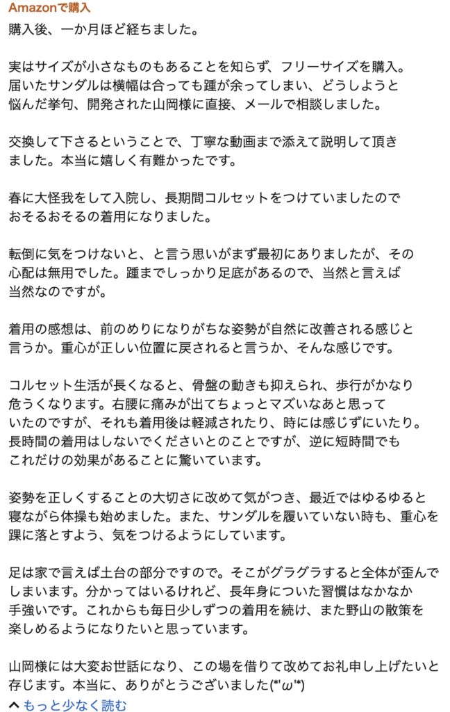 届いたサンダルは横幅は合っても踵が余ってしまい、どうしようと悩んだ挙句、開発された山岡様に直接、メールで相談しました。