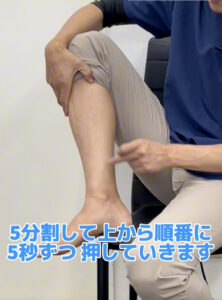 外くるぶしから膝にかけての外側の筋肉部分を5分割してアプローチします。