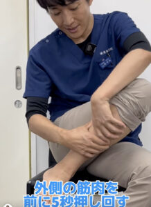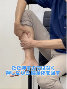 3. ただ押さえるだけじゃなくて、筋肉自体を内側に捻るようにしていきます。