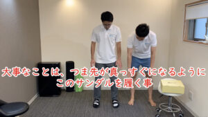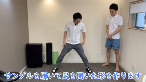 次に、サンダルを履いた状態でいくつかのエクササイズを行いました。